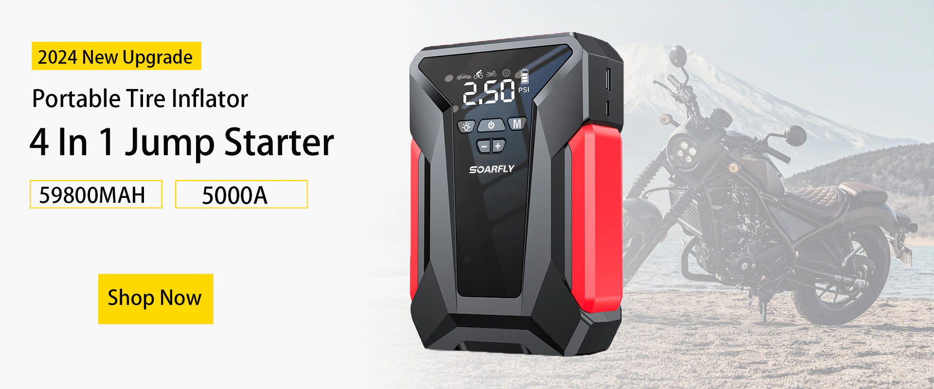 SOARFLY Car Jump Starter 99800 mAh 5 IN 1 Car tool set Portable Tire inflator Air Pump,Emergency Powerbank